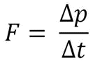 - Δp ist die Änderung des Impulses während der Einwirkdauer der Kraft (leider hat der Impuls - englisch "pulse" - das gleiche Formelzeichen wie der Druck, was ein wenig verwirrt; außerdem ist diese Impulsänderung in Wirklichkeit im Verlaufe der Kontaktzeit nicht konstant, sie wird hier aber vereinfacht als konstant angenommen)
